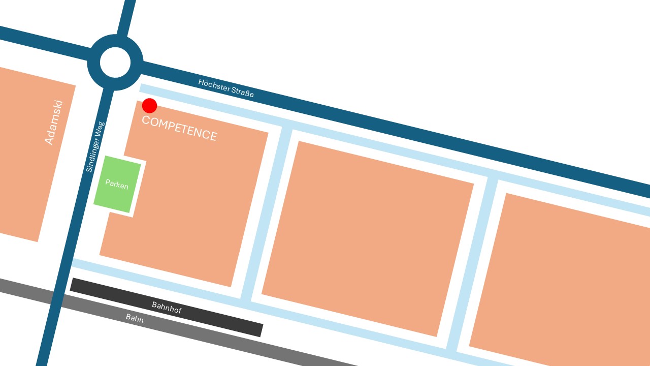 - Bereits nach 50m finden sie auf der linken Seite die Kundenparkplätze von COMPETENCE.