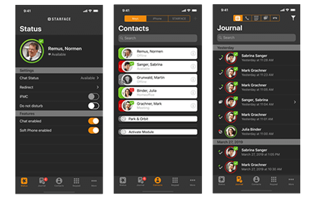 Das mobile Pendant zum STARFACE UCC Client lässt Sie per App auf Ihre Telefonanlage zugreifen. Die wichtigsten Funktionen haben Sie also immer in der Hosentasche und können von unterwegs arbeiten, als seien Sie im Büro. Die Apps sind für iPhone und Android kostenfrei verfügbar. Lediglich für SIP-Telefonie wird serverseitig die kostenpflichtige UCC-Premium-Lizenz benötigt.