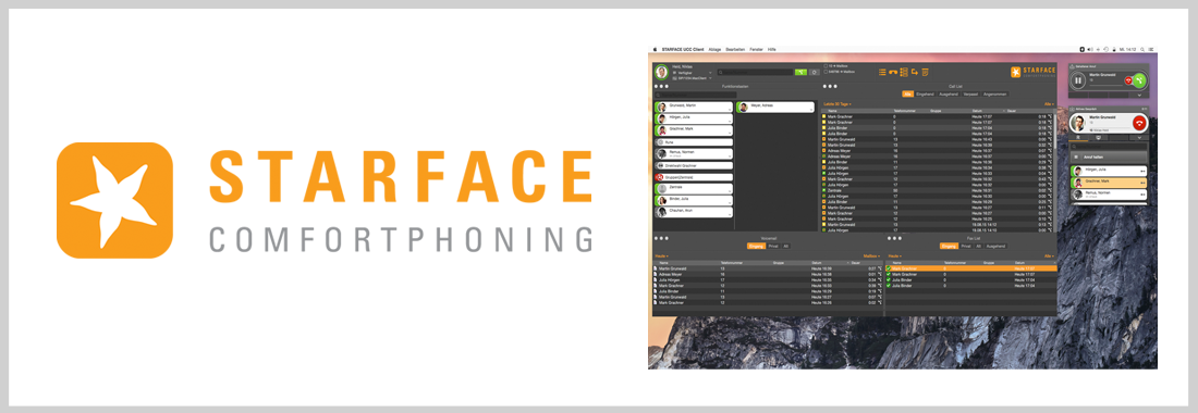 Der STARFACE UCC Client (für Windows und Mac) bündelt sämtliche Kommunikationskanäle auf Ihrem Desktop und macht ihn zur innovativen Zentrale Ihrer Bürokommunikation. Der STARFACE UCC Client ist die unified communications Desktop Benutzeroberfläche für Ihre Telefonanlage. Per Drag and Drop können Sie alle Funktionen für sich passend anordnen.